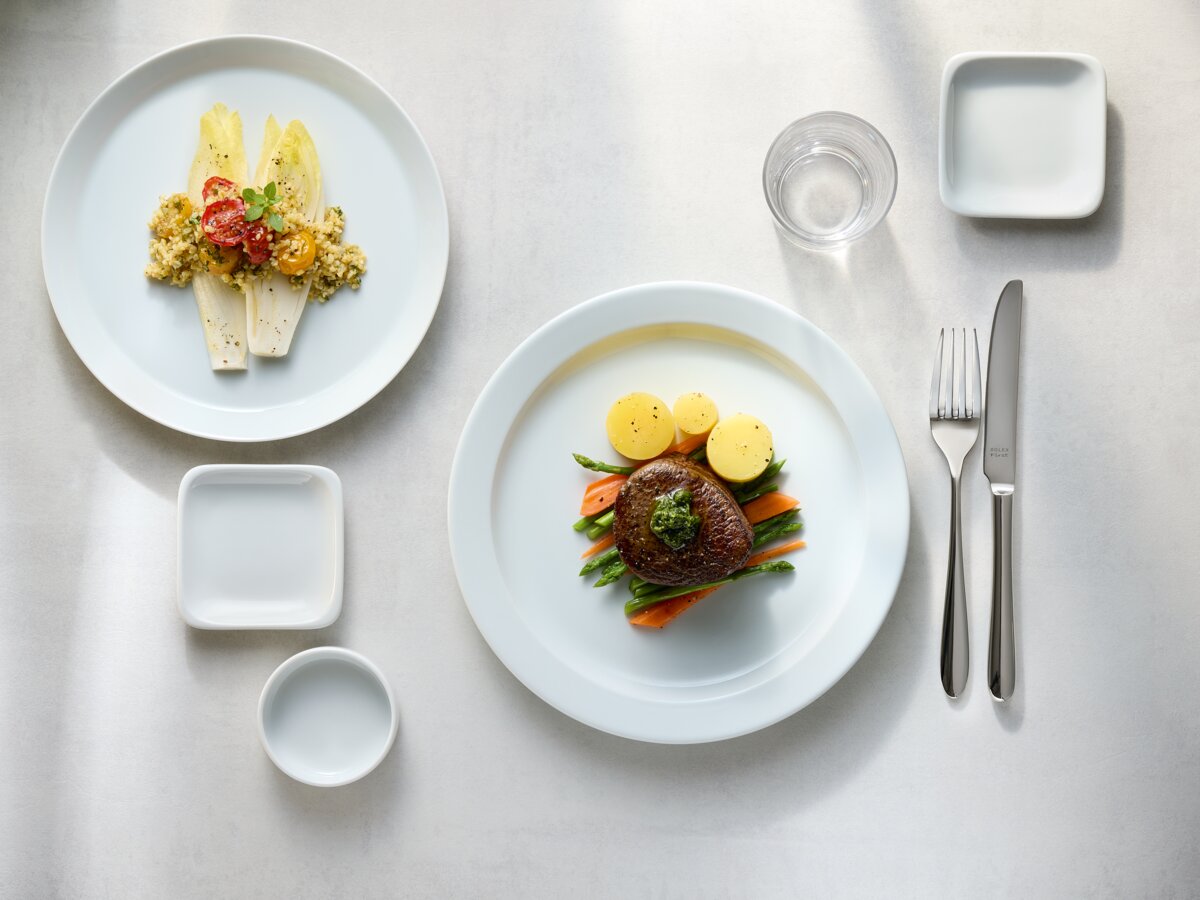 Bei Tisch zeigt sich, wie variantenreich sich kulinarische Ideen mit PURITY in Szene setzen lassen. Elegante, runde Fahnenteller bilden die Basis unserer Geschirrausstattung. Unser hochwertigstes Set in einem schönen Cremeton – perfekt für Hochzeiten, stilvolle Firmenfeiern oder Events, die besonders sein sollen. Fine dining!