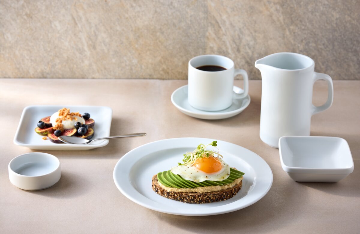Unser robustes, hochwertiges Set aus Speiseteller, Kuchenteller und Kaffeetasse in einem schönen und strahlenden Weißton. Straight, einfach, schick. Unser Standard-Set – perfekt für Feiern und Events aller Art. Für Hochzeiten empfehlen wir PURITY.